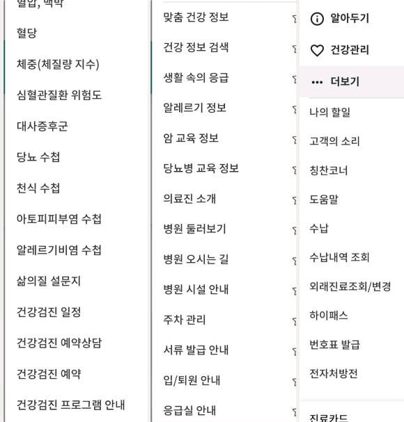 예약하기.. 수납.. 수납내역 조회.. 외래진료 조회 및 변경 등등...