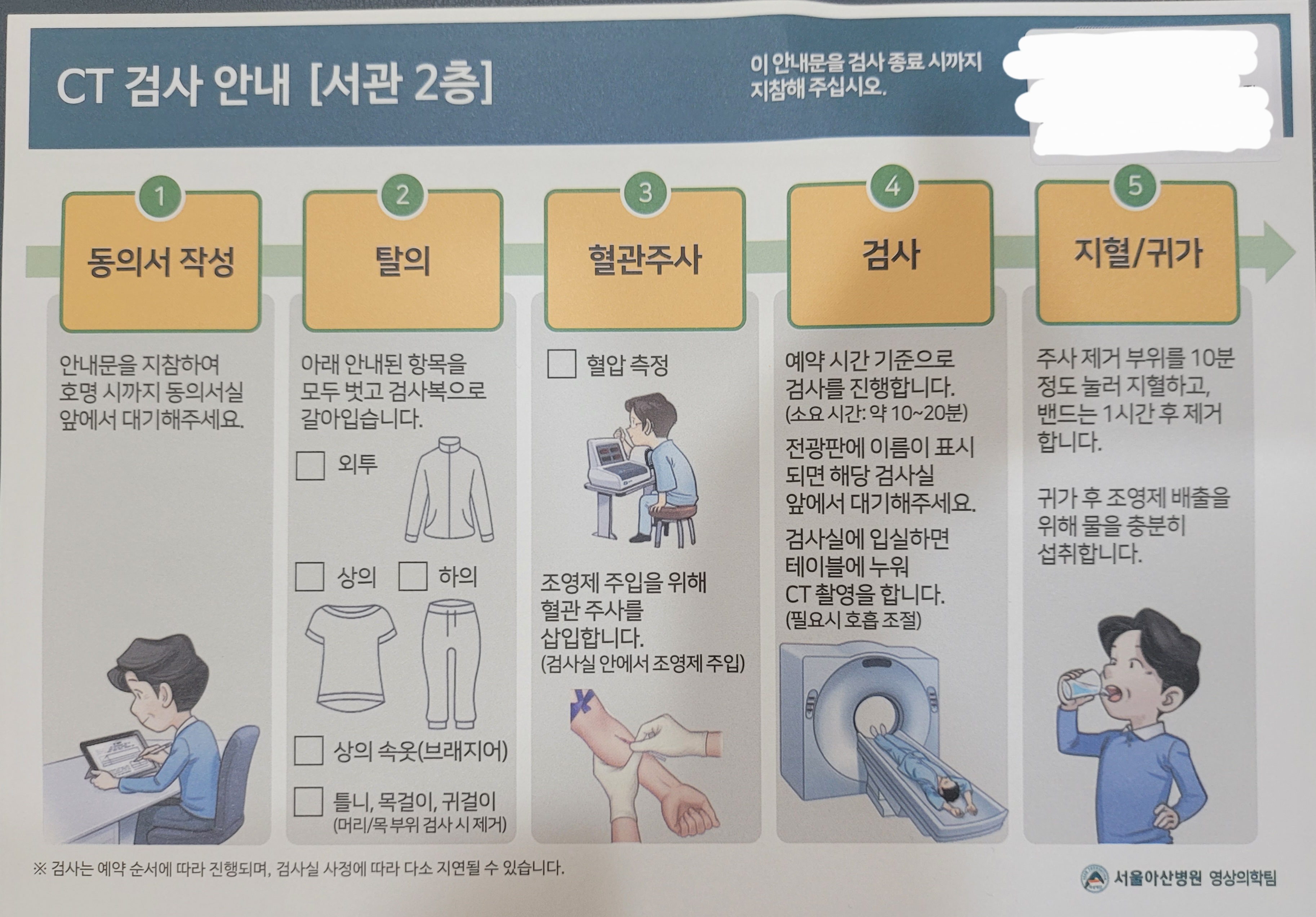 뼈 검사 후 CT 검사를 하는데... 검사 6시간 전부터 물 포함... 금식이다...