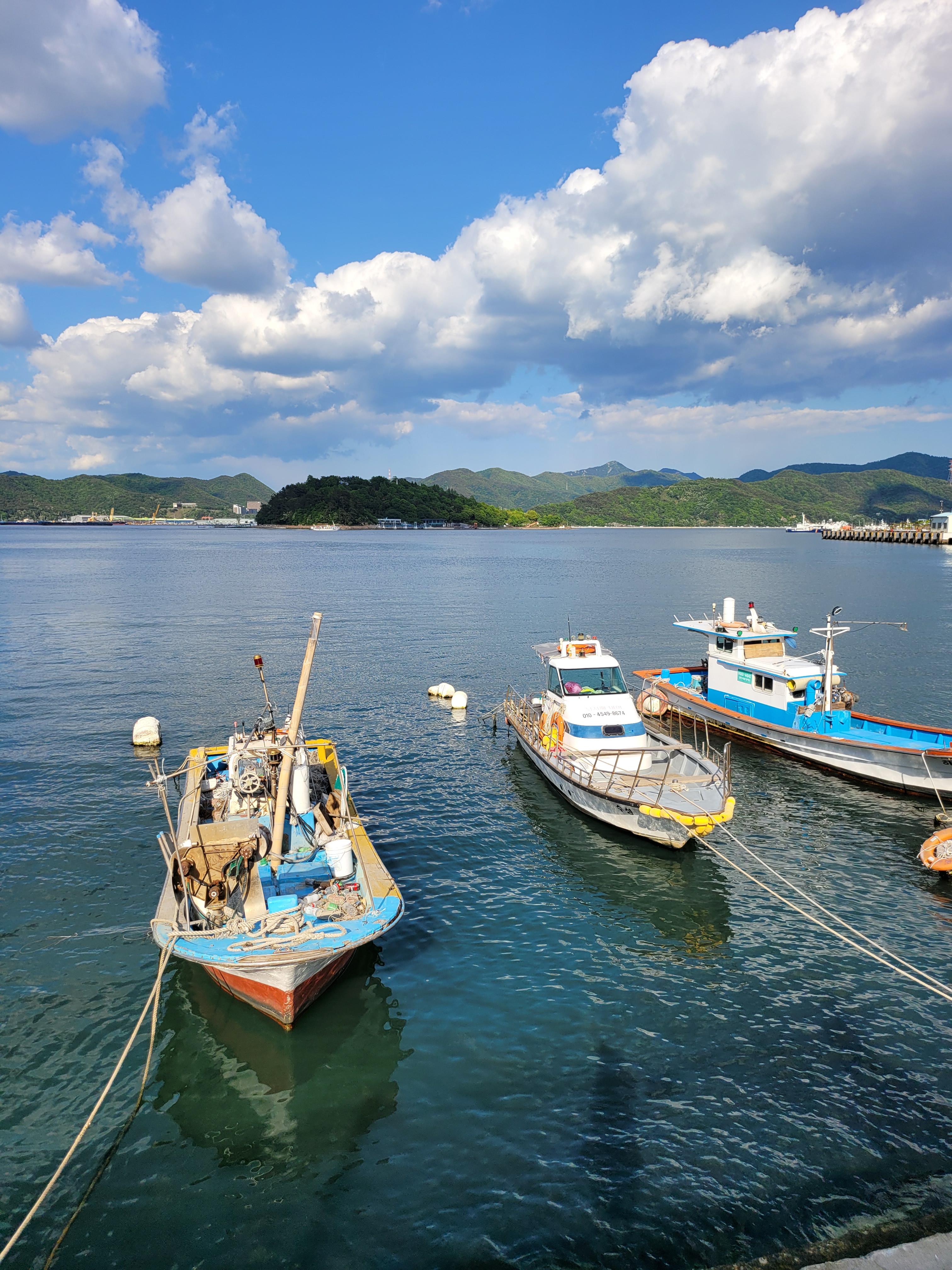 여기는 마산 신항....저~~기 멀리 보이는 가운데 있는 섬이 돝섬이라고 국민학교때 ..