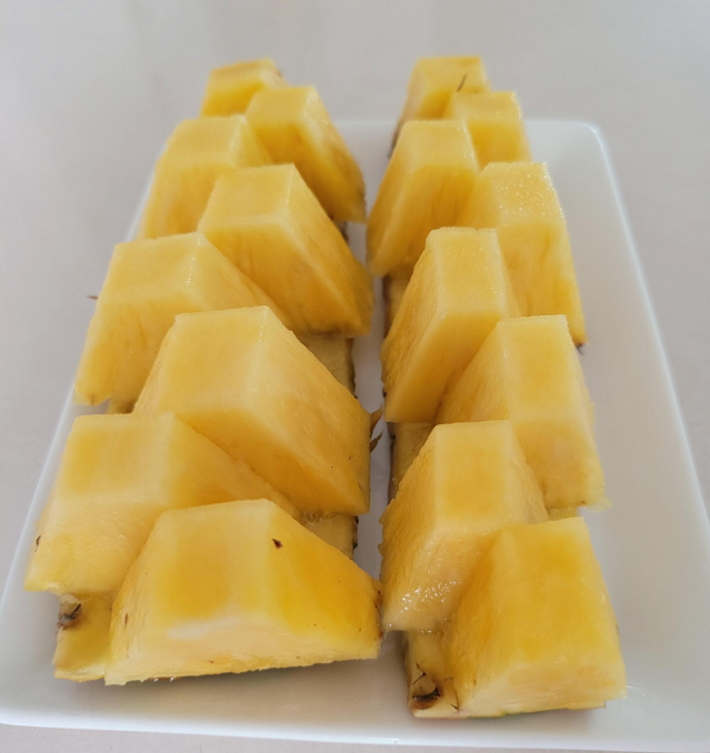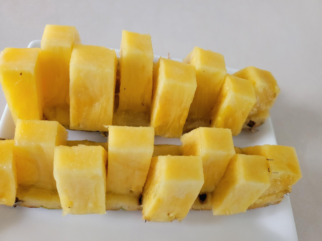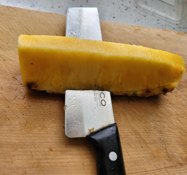 ▶ 다 자른 파인애플을 세로로 잘라줍니다..