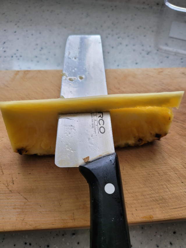 ▶ 파인애플을 세운상태에서 세모 모양으로 잘라줍니다...